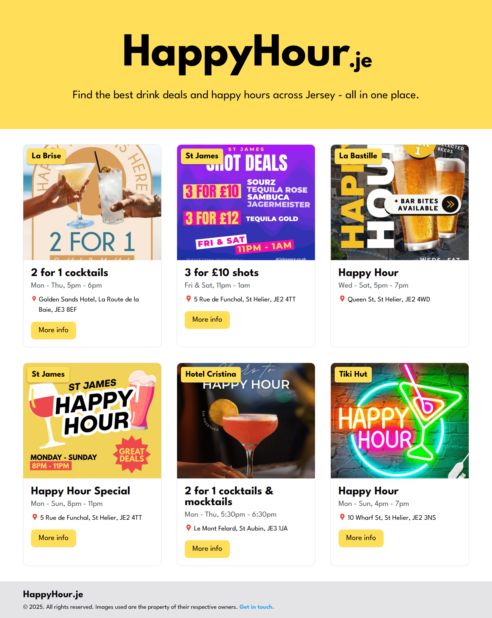 I created HappyHour.je following the ubrupt news that drink deals in pubs would now be legal in Jersey.