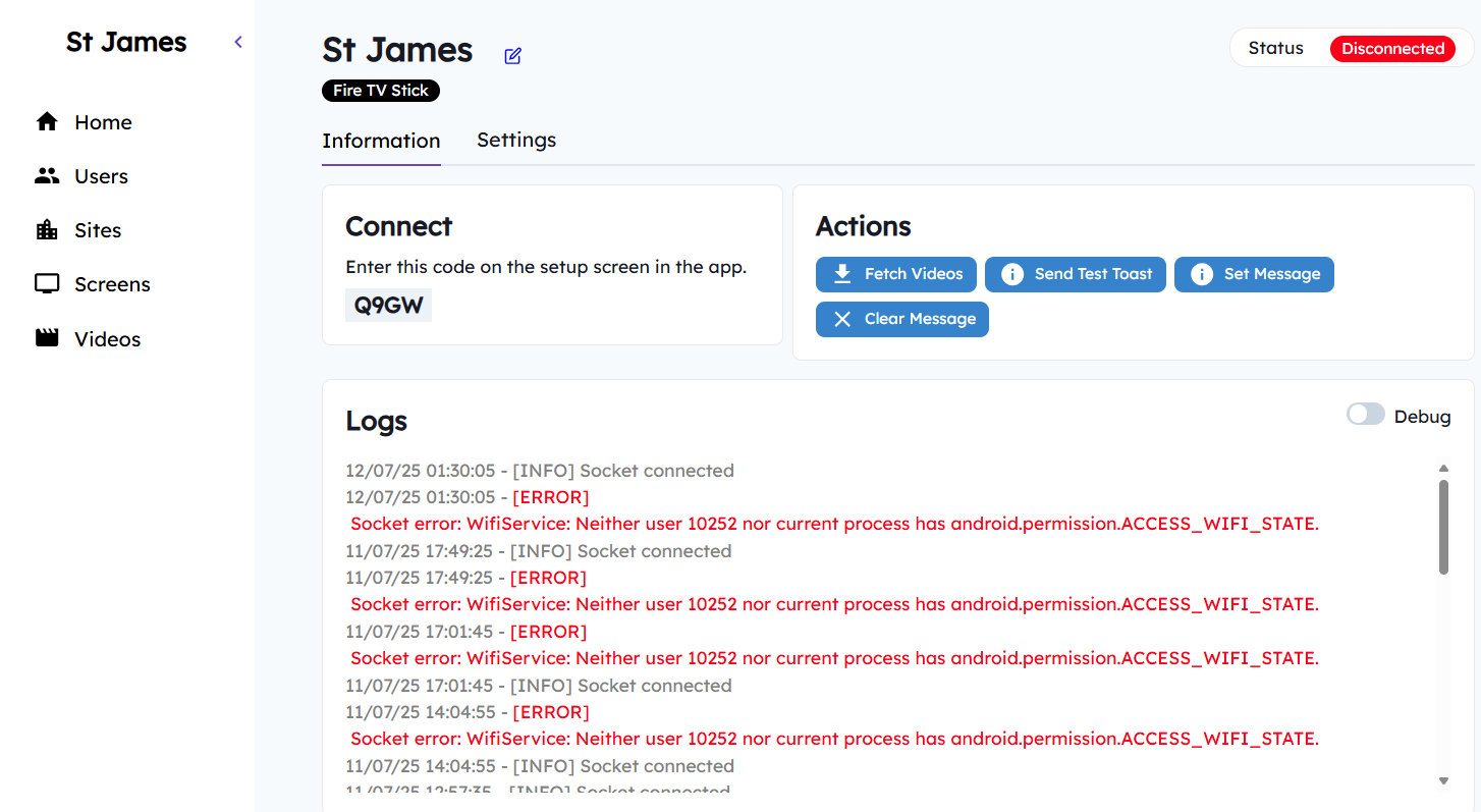 This is done via an Android app that runs on a Fire TV stick and a web interface to administer everything.